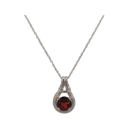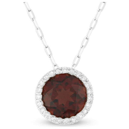 Estate 14K Gold Garnet & Diamond Pendant Necklace