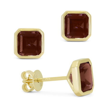 14K Yellow Gold Gemstone Bezel Asscher Cut Stud Earrings