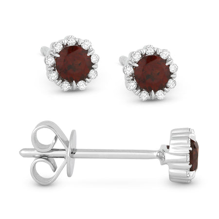 14K White Gold Birthstone Diamond Halo Studs