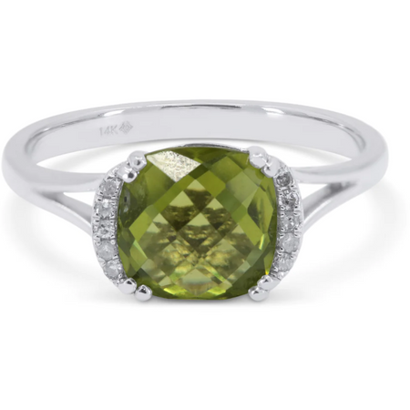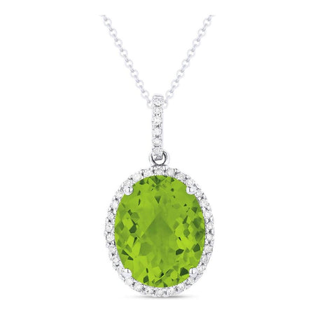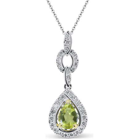 14K White Gold Pear Peridot and Diamond Accent Pendant