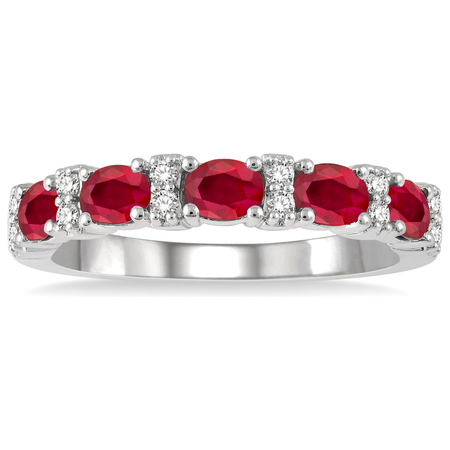 14K White Gold Ruby & Diamond Open Circle Pendant