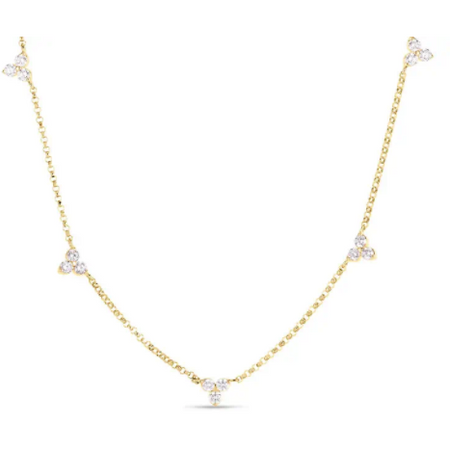 Roberto Coin 18K Yellow Gold 18K Flower 5 Station Diamonds by the Inch Necklace