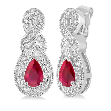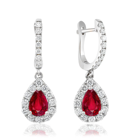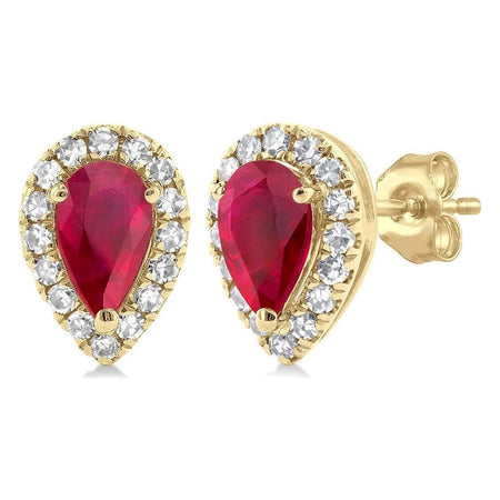 10K Yellow Gold Pear Ruby and Diamond Halo Stud Earrings