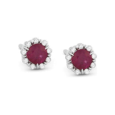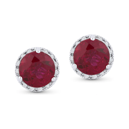 14K White Gold Cushion Halo Gemstone Stud Earrings