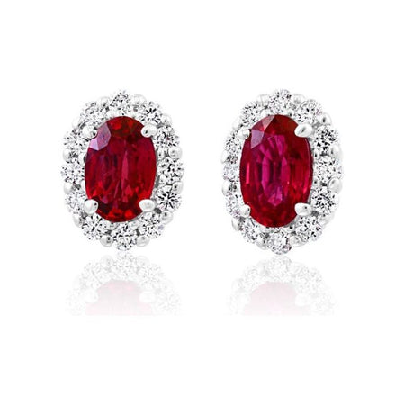 14K White Gold Oval Gemstone Halo Stud Earrings