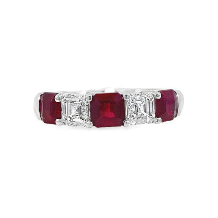 18K Gold Asscher Cut Ruby & Diamond Anniversary Band